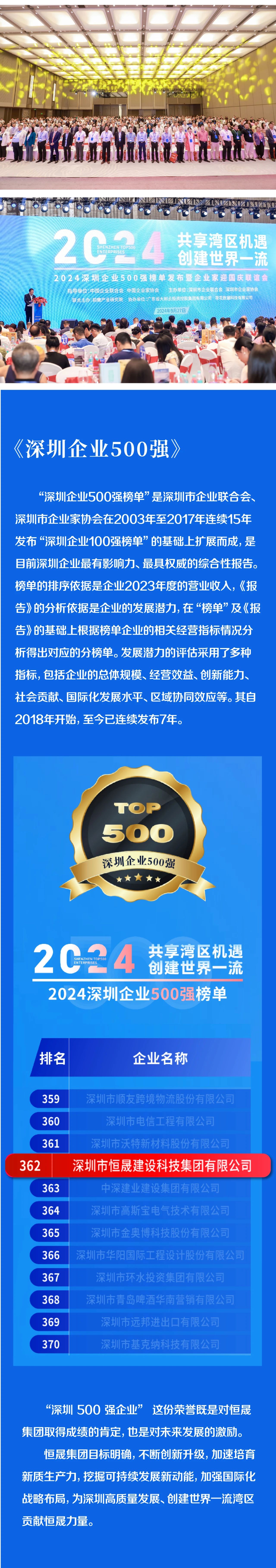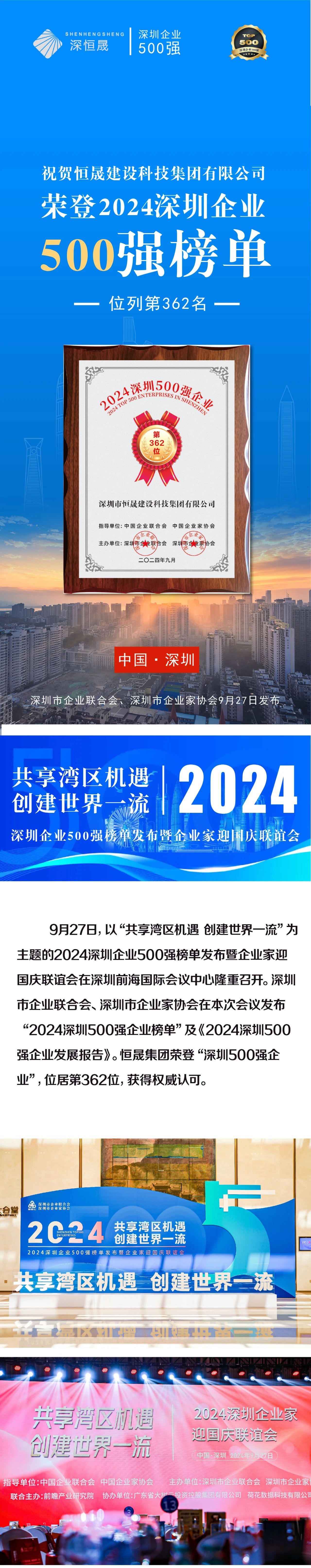 恒晟集團榮登“2024深圳企業(yè)500強榜單”