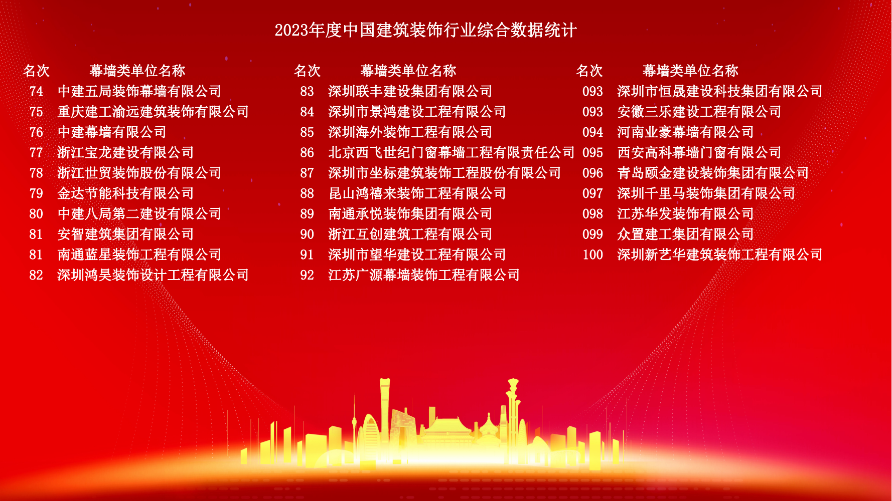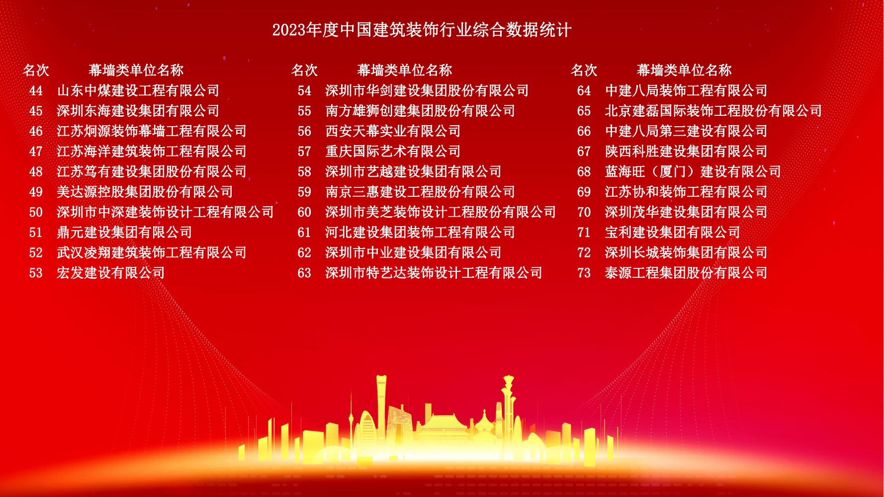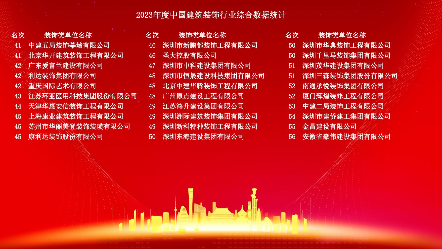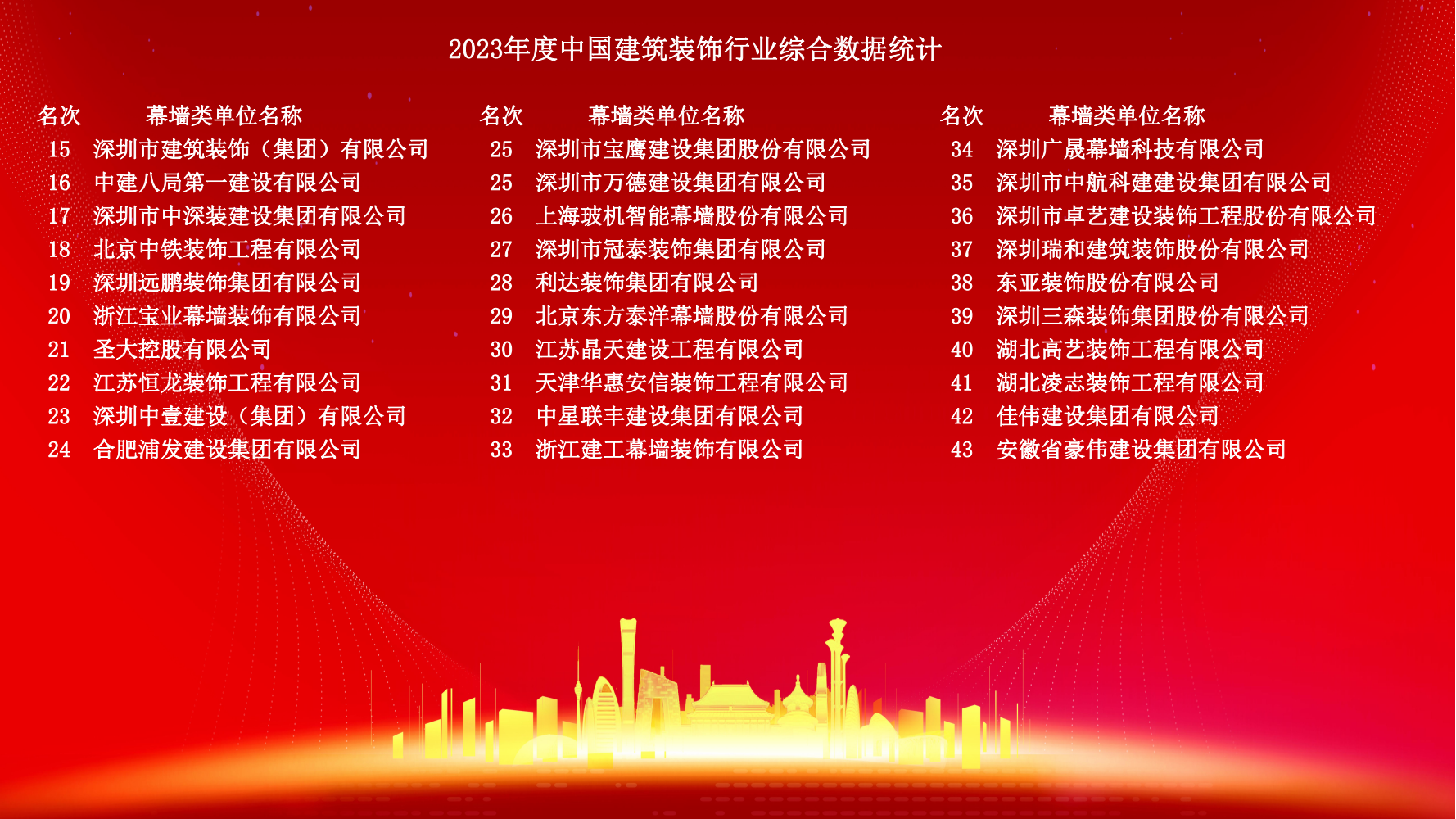 12月10日,2023年度中國建筑裝飾協(xié)會行業(yè)綜合數(shù)據(jù)統(tǒng)計正式發(fā)布。詳細(xì)名單如下: